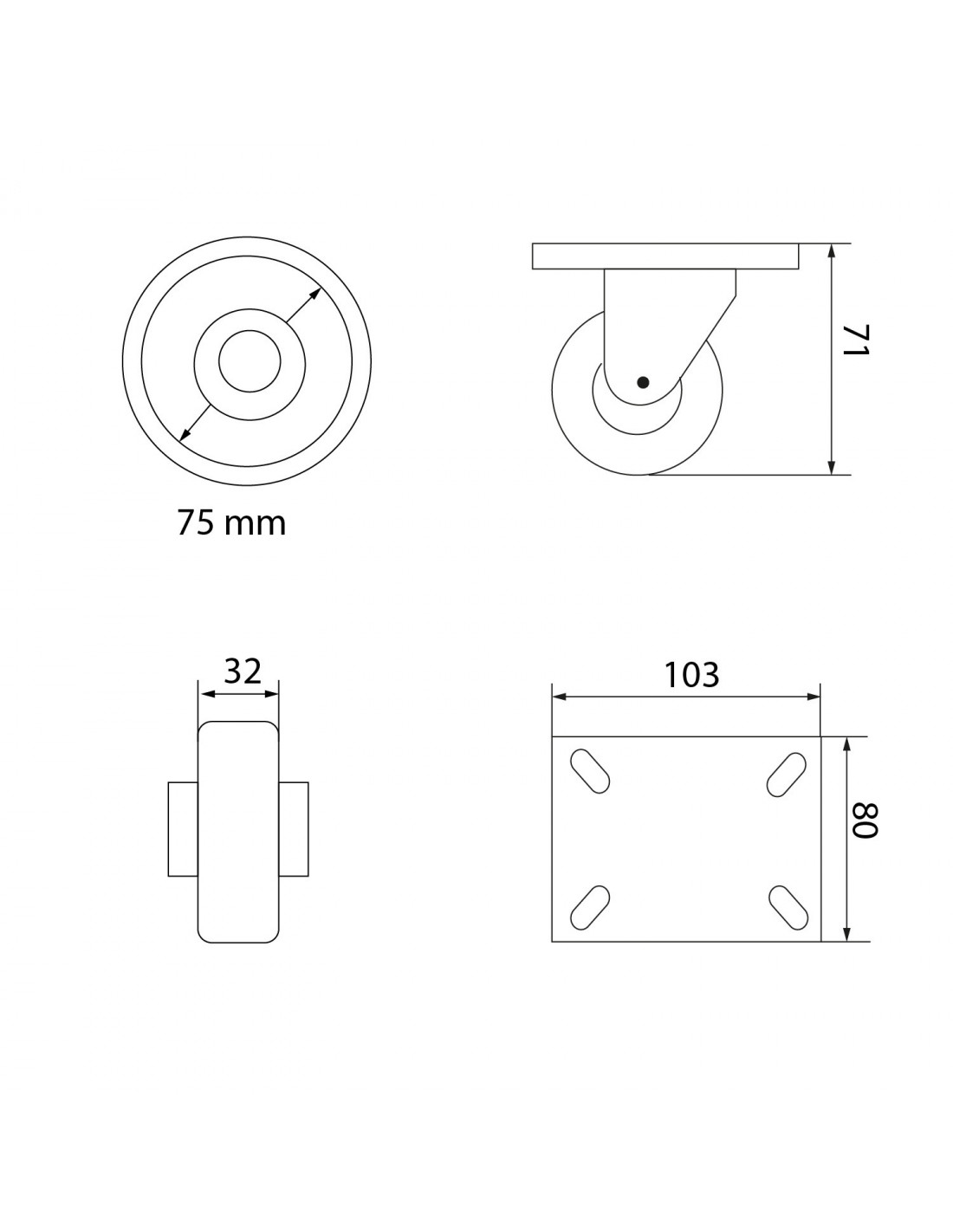 FIJACIÓN RUEDA: PLACA 105X80 MM.